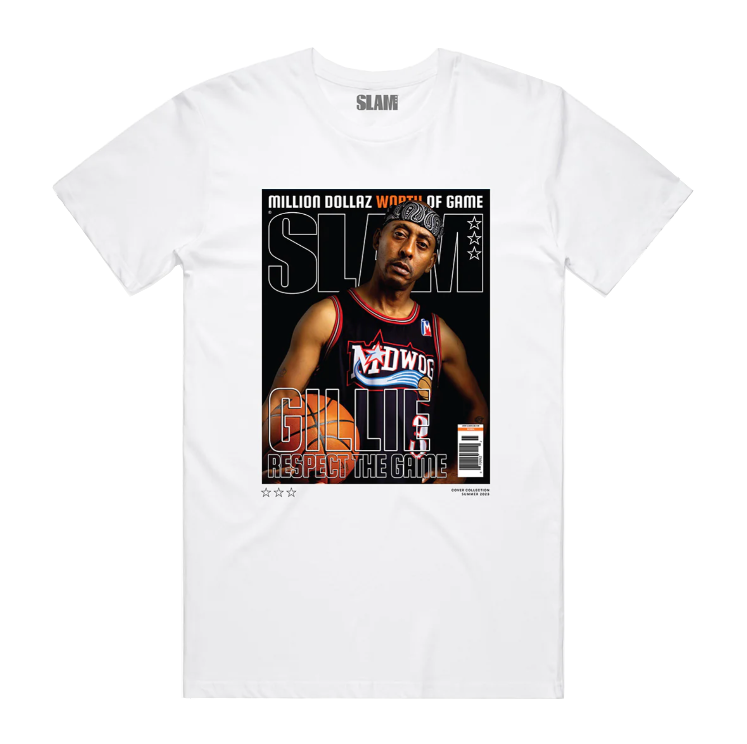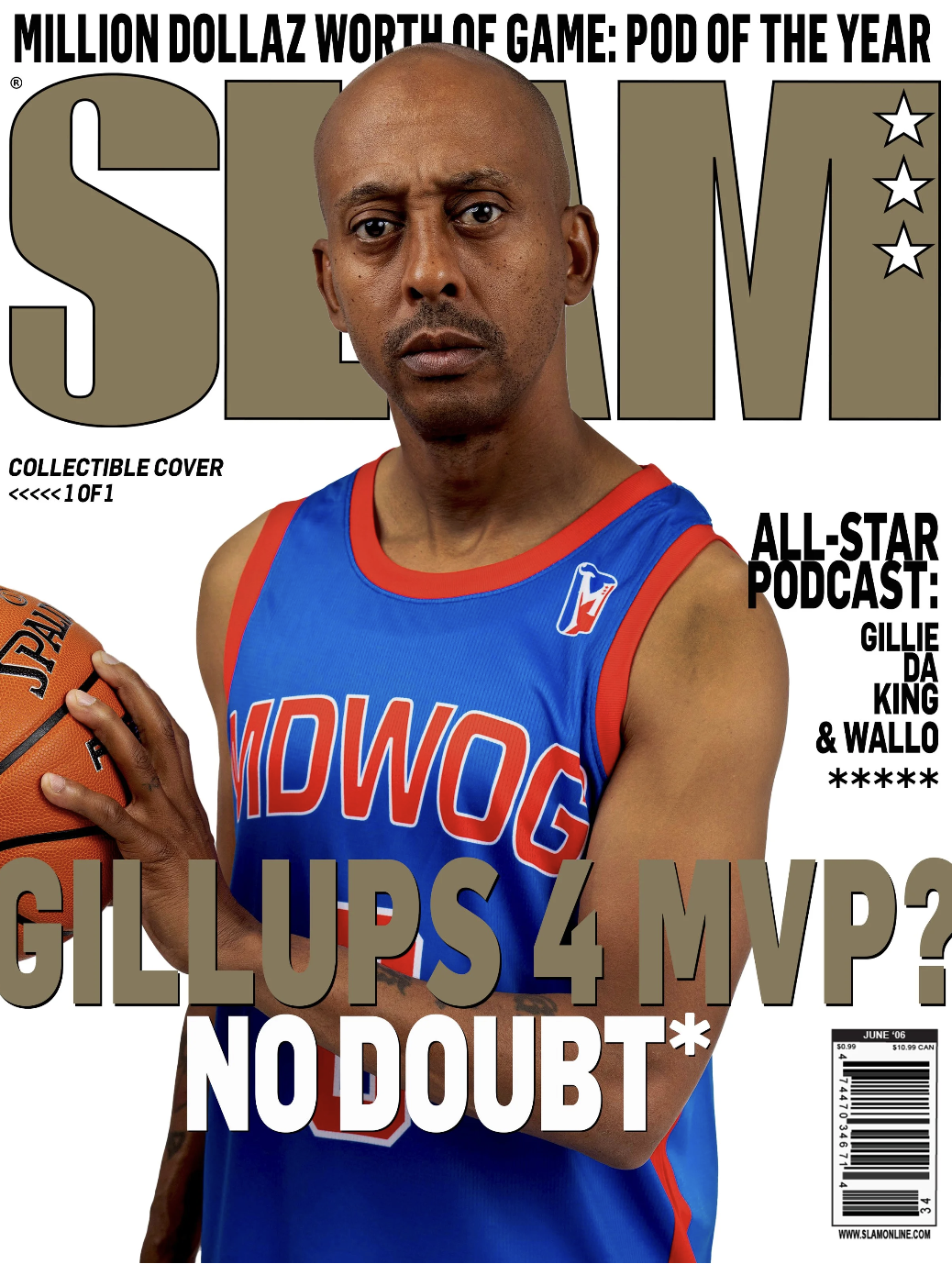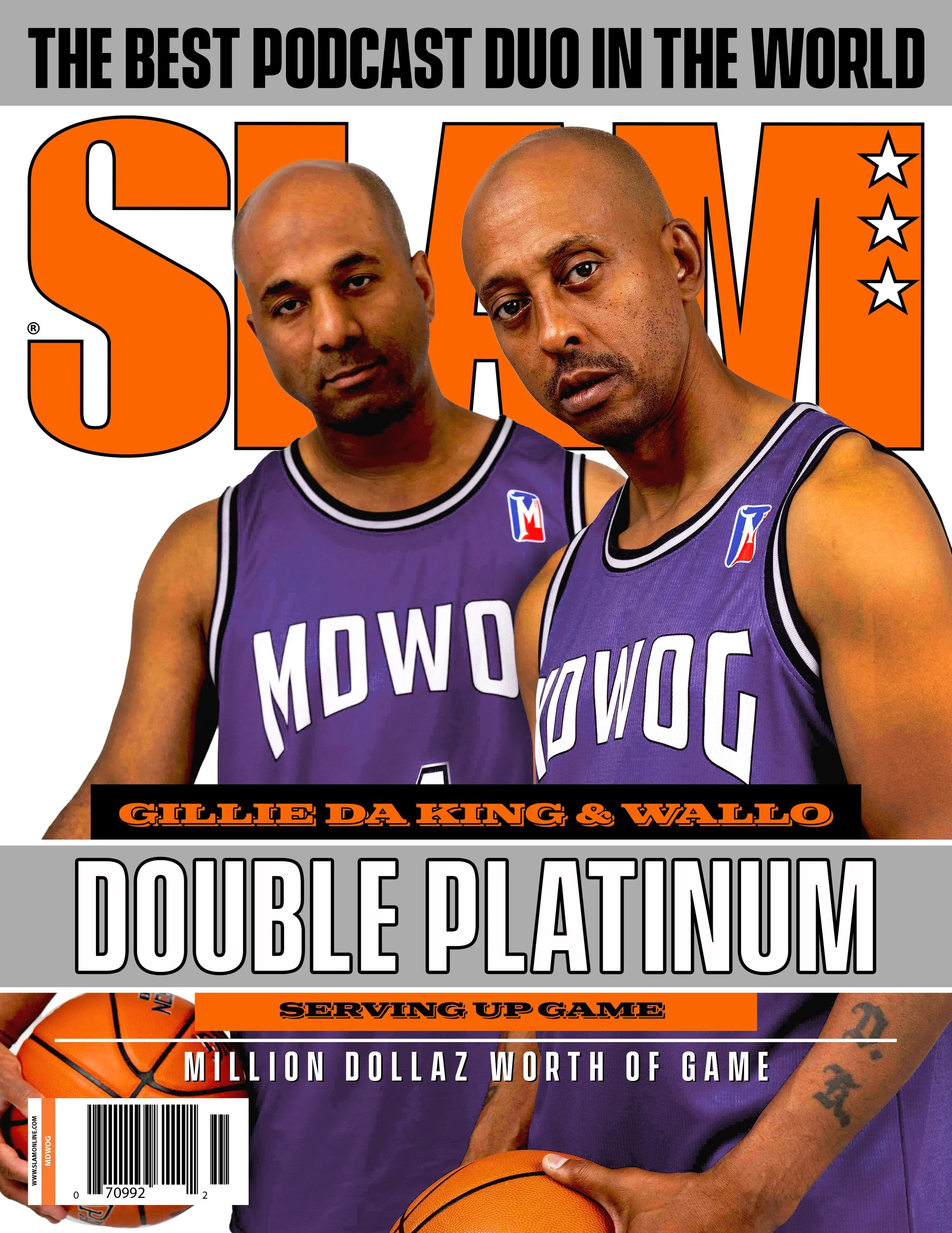 Million Dollaz Worth of Game is a weekly podcast hosted by the renowned Philadelphia rapper Gillie Da King and social media influencer Wallo267. Gillie Da King's basketball background, where he excelled as a high school and college athlete before transitioning to rap and podcasting, serves as a foundation. Leveraging his alter egos inspired by NBA stars, we collaborated on a social media campaign & merchandise capsule featuring recreations of iconic SLAM covers. My role was to reimagine the jerseys the athletes wore for Gillie & Wallo’s aliases and create graphic and cover tees based on the moment.